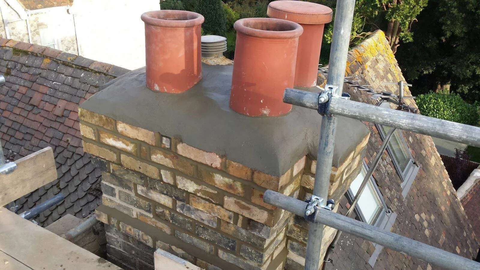 We have extensive experience refurbishing and rebuilding chimneys including chimney breast repair, chimney pointing and repointing, leadwork, replacement and repair of damaged chimney pots, and chimney brickwork cleaning and chimney restoration.
